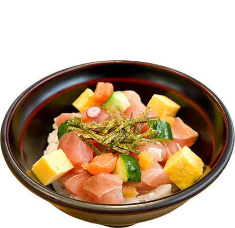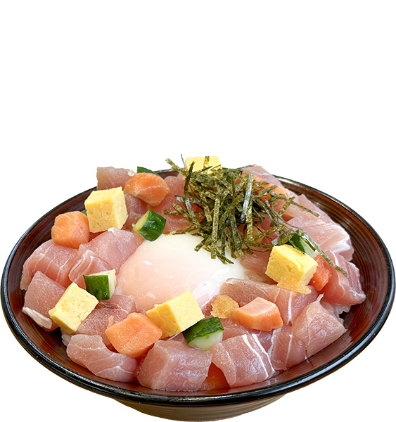 彩り丼お魚にもご飯にも合う特製ダレをからめたオリジナル丼!